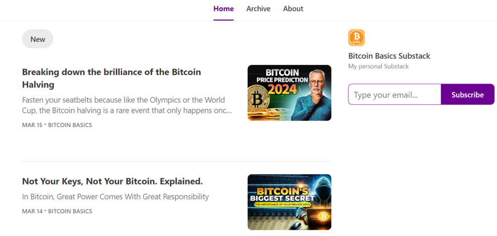 Subscribe to my FREE Weekly Newsletter on Substack to receive high signal bitcoin writing directly to your email inbox!
